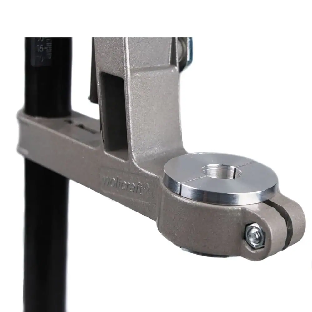 Der Adapter passt in alle Handhebelpressen sowie Bohrständer mit genormten Eurohals (Ø 43 mm). Er kann zum Klemmen von Brennkolben mit einem Durchmesser von 18 mm verwendet werden. Der Aufbau aus zwei Aluminiumhalbschalen erlaubt dabei eine schnelle und leichte Montage deines Brennkolbens.